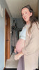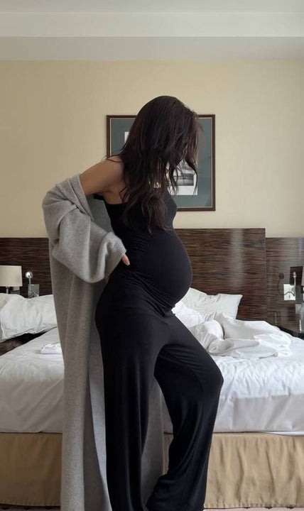 These are the most comfy pants I've ever put on my body. I'm 5'8" and got the 32" inseam and the tall length falls perfectly to the side of my foot. Pre-pregnancy I would have ordered a L or XL if I wanted them to fit loose. I got a XXL in these to accommodate the body changes like widening hips and they fit perfect. Hips are currently 47" around, thick thighs are 25" around, and baby bump/waist is 36" around. If you want them tighter, they do have an incredible amount of stretch to them. If you're a pear shape like me, expect to wear them for awhile because the belly area was snug. I'm still able to keep them up at 18 weeks. Under a white shirt, they don't show that obviously. Pockets are a good size. Sides aren't ruched so they lay smooth, and they do NOT have that uncomfortable adjustable waist button and elastic hassle, which in my case makes them arthritis-friendly. I'll still be wearing these pants after pregnancy. They're SO comfortable.
